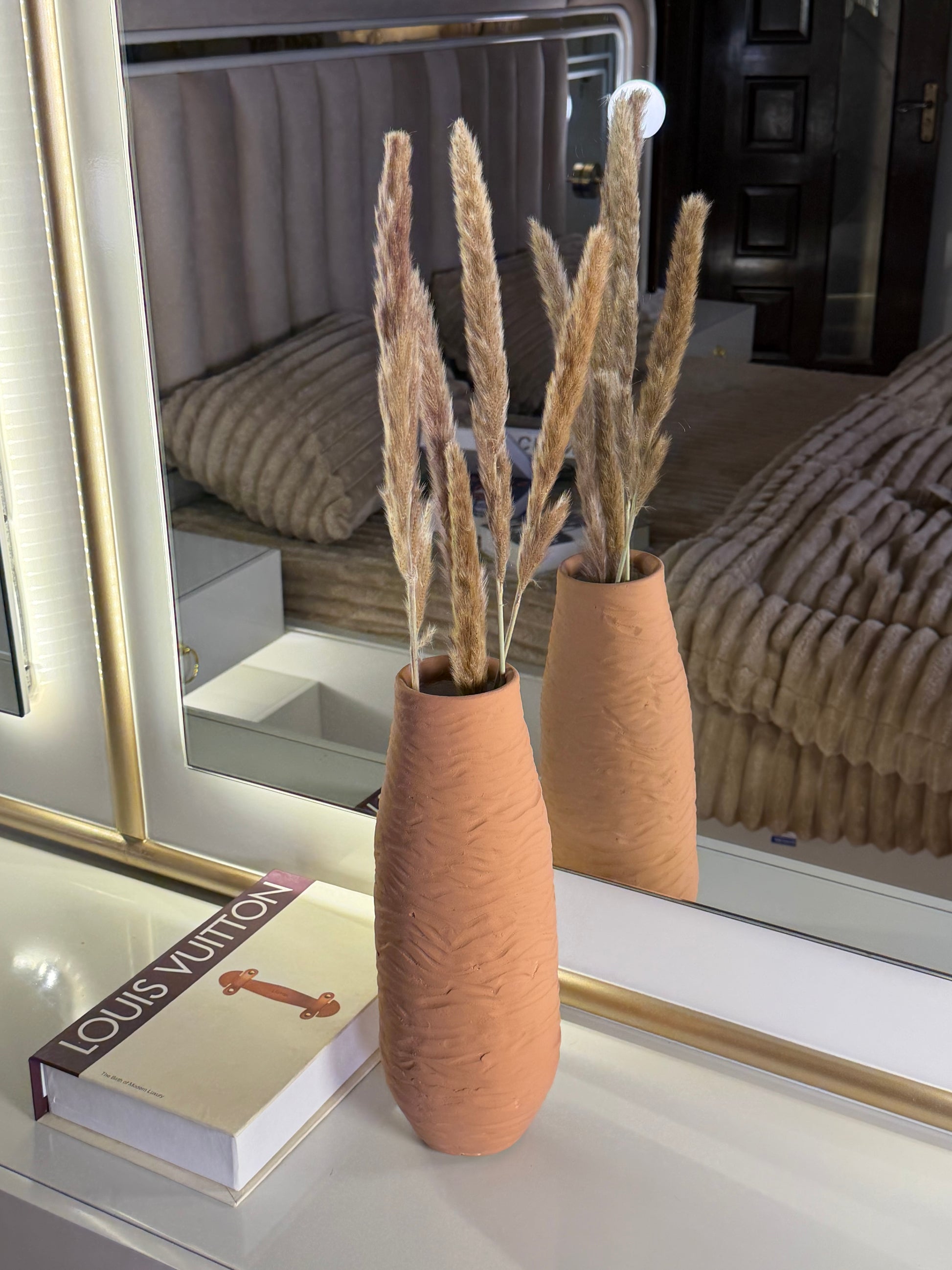 The REEF vase makes a balanced and elegant statement on consoles, dressers, or side tables. Perfect for dried stems or pampas, it complements modern, minimal, and neutral interiors effortlessly.